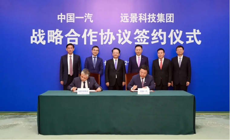 9月28日,远景科技集团与中国第一汽车集团在吉林省政府的见证下,达成全面战略合作,双方将围绕绿色出行、绿色能源、高端动力电池、零碳产业园、可再生能源系统等多个领域开展深入合作,共同推动电动交通网络与新能源网络融合,打造绿色汽车产业生态。