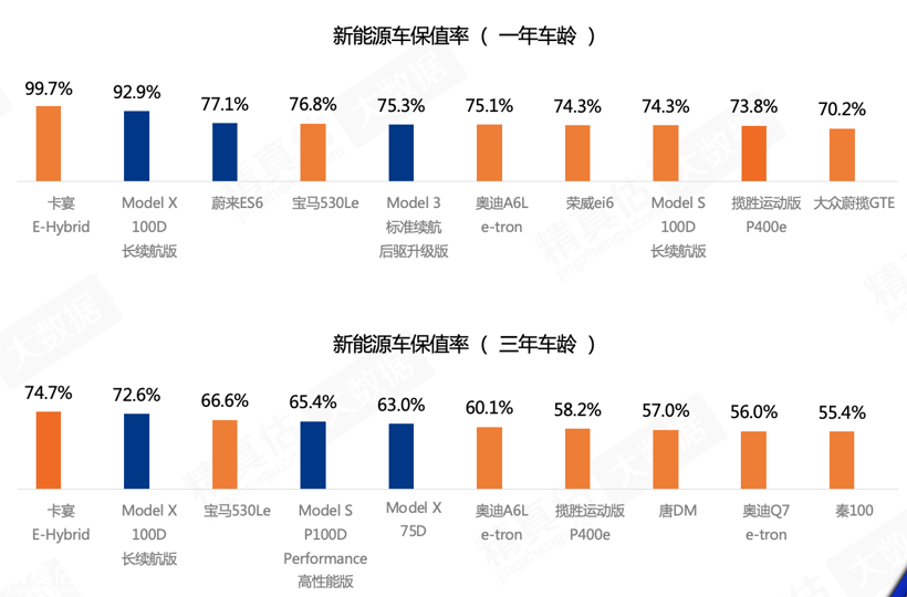 榜单显示,新能源车贬值速度比燃油车快得多,3年后新能源二手车价格至少砍掉大半。不过,新能源市场上的主要产品中,目前保值率领先的是海外品牌,它们仍有一定幅度的品牌溢价。