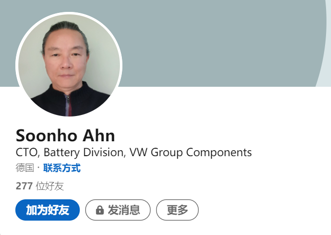 悠车日志讯 据外媒报道,苹果全球电池主管Soonho Ahn已加盟大众汽车。据悉,大众汽车雇用Ahn加盟其PowerCo电池部门。Ahn的领英资料显示,他目前担任大众汽车电池部门的首席技术官,在德国下萨克森州沃尔夫斯堡工作。
